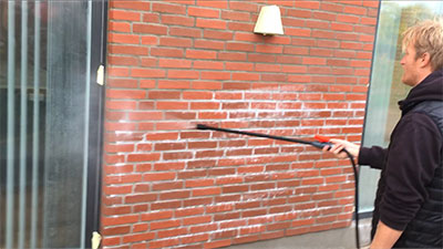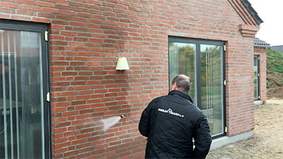 - Til sidst afspules murværket grundigt med lavt tryk, så resterne af de anvendte rensemidler og mørtelrester afvaskes.